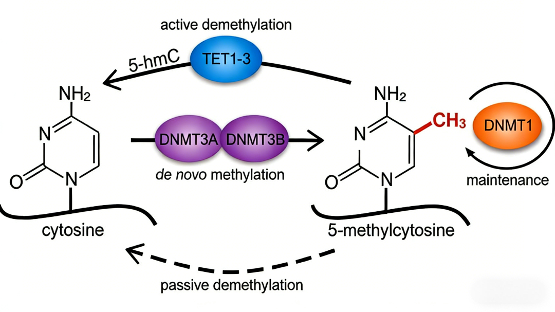 表观遗传学是研究在不改变DNA序列的前提下,通过化学修饰调控基因活性的学科。这类修饰不涉及遗传密码本身的变化,却能稳定地影响基因的表达模式,并在细胞分裂中可能被继承。其作用对象广泛,涵盖DNA、RNA及组蛋白等多个层面。例如,组蛋白尾部可发生甲基化、乙酰化等多种共价修饰,这些修饰通过改变染色质的空间结构与电化学特性,决定基因转录的“开”或“关”。DNA甲基化正是其中一种核心的DNA层面修饰,因其在发育、疾病中的关键作用而成为研究焦点。区别于微小RNA等调控方式,DNA甲基化直接作用于基因组DNA,建立了一种相对稳定且可遗传的“分子标记”系统,深刻影响着细胞命运与机体健康。