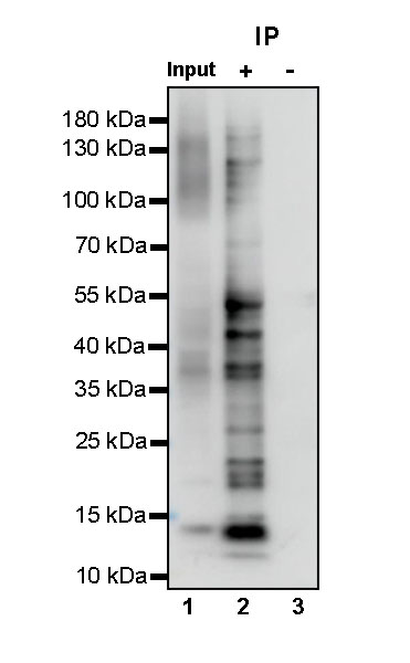 Western blot was performed on the immunoprecipitate using L-Lactyl Lysine Rabbit pAb at 1/1000 dilution.