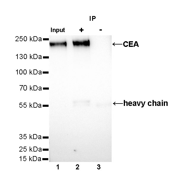 Western blot was performed on the immunoprecipitate using CEA Rabbit mAb at 1/1000 dilution.