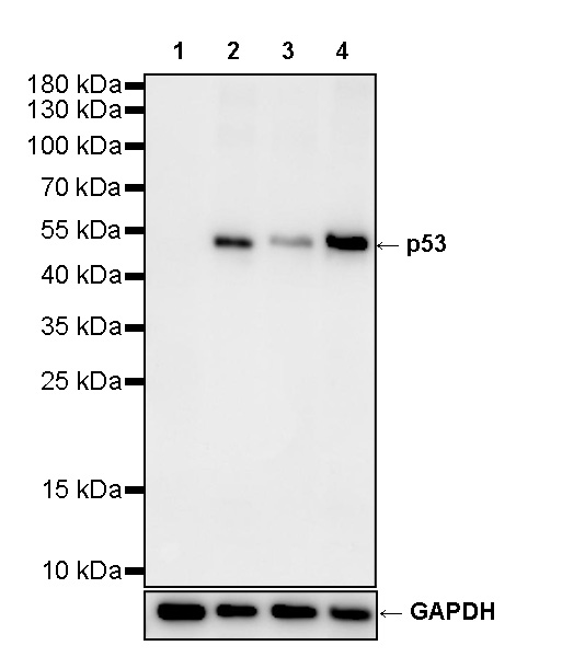Western blot was performed on the immunoprecipitate using p53 Rabbit mAb at 1/1000 dilution.